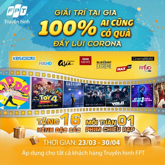Chương trình tri ân “Ai cũng có quà – Giải trí tại gia – Đẩy lùi Corona” diễn ra từ 23/03/2020 đến 30/04/2020 là món quà của Truyền hình FPT dành tặng đến hàng triệu khách hàng trên cả nước. Trong bối cảnh tình hình dịch viêm đường hô hấp cấp do virus Covid-19 gây […]
